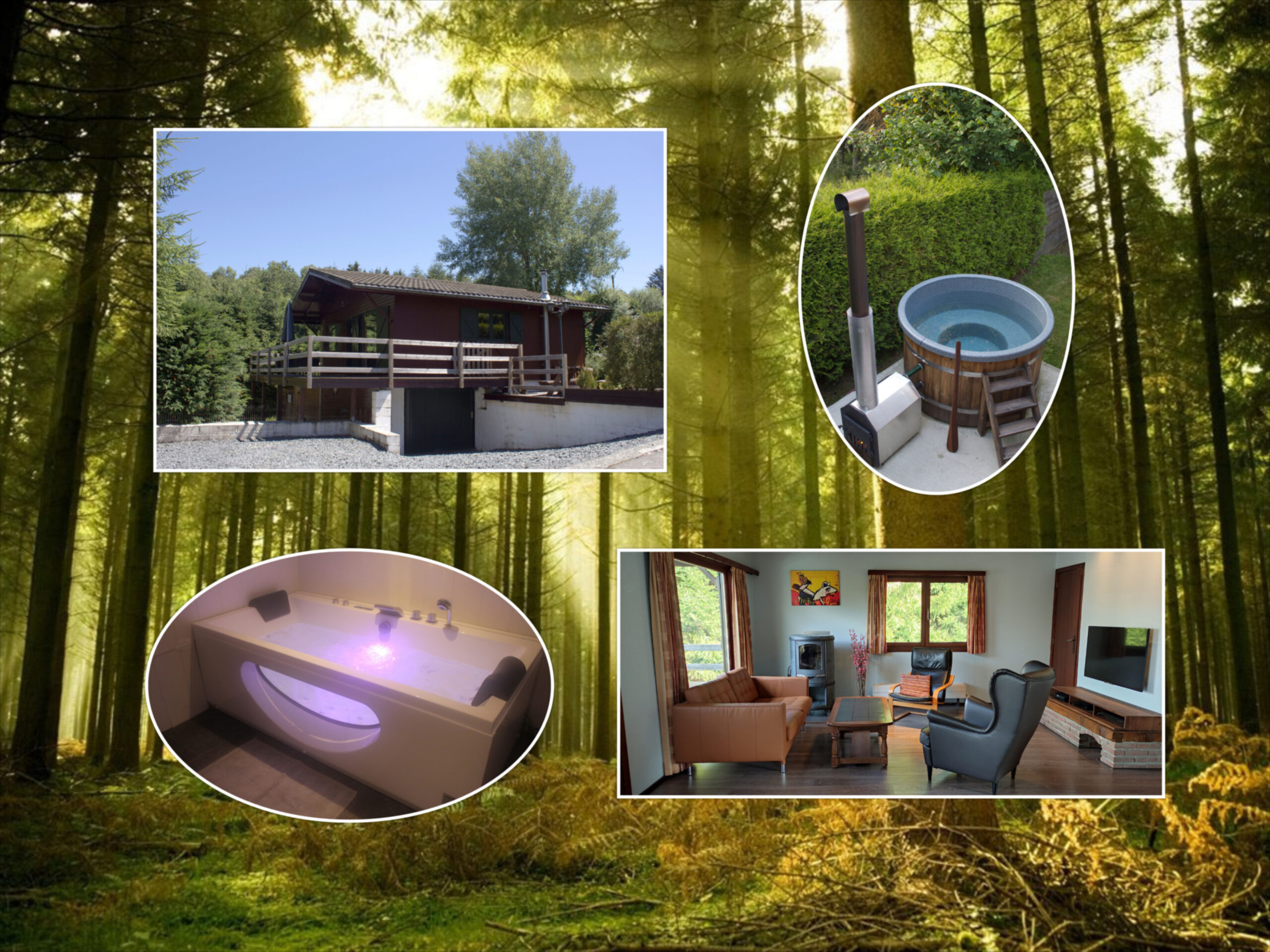 Kom genieten van de houtgestookte hottub buiten of het bubbelbad binnen! Onze chalet heeft 3 slaapkamers, verdeeld over 2 etages….