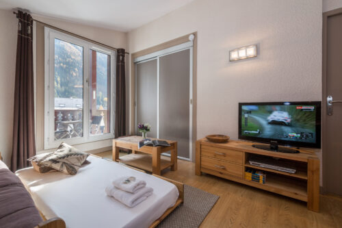 This charming balcony retreat is located along Place Desailloud, just a 5-minute walk from central Chamonix. The resort offers a variety of winter sport activities, a local food market, grocery shops, supermarkets, and a wide selection of restaurants, bars, and nightlife options. In the summer, guests can enjoy hiking, mountaineering, rock climbing, and various outdoor activities.