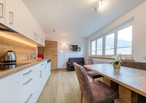 Dit pension is modern en sfeervol ingericht, met diverse appartementen, dichtbij het gezellige centrum van Mittersill. Je wordt persoonlijk en gastvrij verwelkomd door de eigenaar, tevens de gastvrouw. Het complex is rustig gelegen, kleinschalig en uitgerust met goede faciliteiten zoals een gezamenlijke gezelschapsruimte en Alpine Sauna Lounge met prachtig uitzicht over het fascinerende berglandschap. Het is mogelijk om meerdere appartementen te huren als vriendengroep, familie of ander gezelschap (voor 12 – 20 personen, incl. kinderen met gebruik van slaapbanken). Deze fijne vakantiewoning is op de tweede etage. Via de hal kom je in de woonkeuken, voorzien van alle moderne apparatuur, met eethoek en een zitje. Er zijn twee luxe slaapkamers, één met een stapelbed en één met een tweepersoonsbed en een extra slaapbank voor 1 persoon. In de moderne badkamer vindt je een heerlijke inloopdouche en een dubbele wastafel. Ook is er een apart toilet aanwezig.