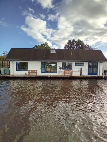 Zwemmen, varen, fietsen, wandelen vissen, spelen, lezen, zitten, liggen, turen naar de zonsondergang, kijken over de weilanden met grazende koeien bij zonsopgang. Een bloementuin (voorjaar en zomer) met een ruim terras. In Muiden of Weesp kunt u dineren aan de sluis. Amsterdam ligt op een steenworp afstand. Liever genieten van de natuur? U kunt hier prachtig wandelen en fietsen langs de Vecht of het IJsselmeer, over de hei en door bossen. Misschien wilt u liever varen over de Vecht? Dat kan ook. Vanaf 1 april tot 1 november met onze sloep (niet gratis) of u huurt een sloepje in Weesp. Wat dacht u van een bezoek aan Pampus en het Muiderslot met uw kinderen? In de winter bij de houtkachel (er is natuurlijk centrale verwarming in de ark) met elkaar genieten.