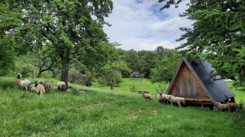 Supermooi gelegen trekkershutje in het weiland tussen de schapen.